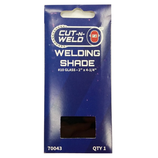 Welding Helmet #10 Shade, Glass 2" x 4-1/4"(0)No Reviews yet Pinit Quantity discounts available QuantityPrice SKU: 70043 Selected Unit Unit Quantity -+ Add to Cart Details This #10 shaded glass lens is a great replacement lens for most welding helmets. (This lens does not fit our current style welding helmet) Item Information #10 WELDING HELMET SHADE 2"X4-1/4" DetailsItem Information Back This #10 shaded glass lens is a great replacement lens for most welding helmets. (This lens does not fit our current style welding helmet) Back #10 WELDING HELMET SHADE 2"X4-1/4" Reviews 0 Back Ratings & ReviewsNo reviews availableBe the first to Write a Review