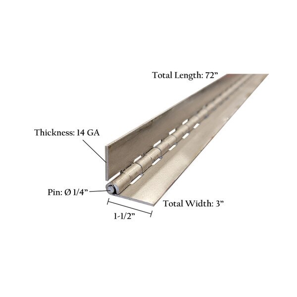 Piano Hinge Bare 3" x 72" x 1/4" Pin-14ga