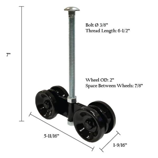 This door track roller provides maximum support for your hanging needs. This heavy-duty roller has welded axles and sealed bearing for smooth operation. It has a painted finish, comes with nuts and bolts, and has a max capacity of 1,430 lbs.