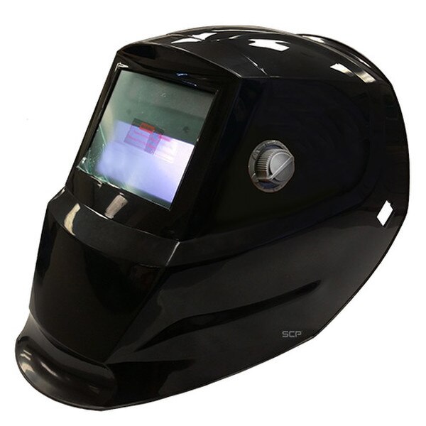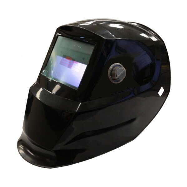 Our welding helmets are auto-darkening, and have adjustable head gear. Shade can be adjusted from 9-13 with knob on left side of helmet. Battery allows auto-darkening to work even if it hasn't been in the sun long enough.