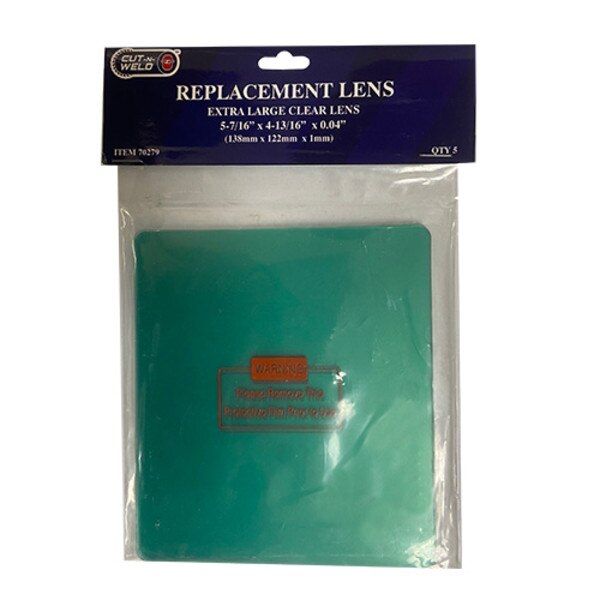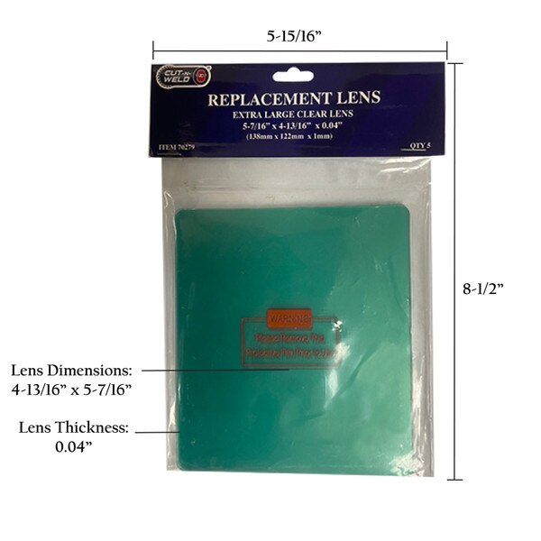 Welding Helmet Replacement Lens Clear - 5-7/16" X 4-13/16" Wide View- 5/Pack